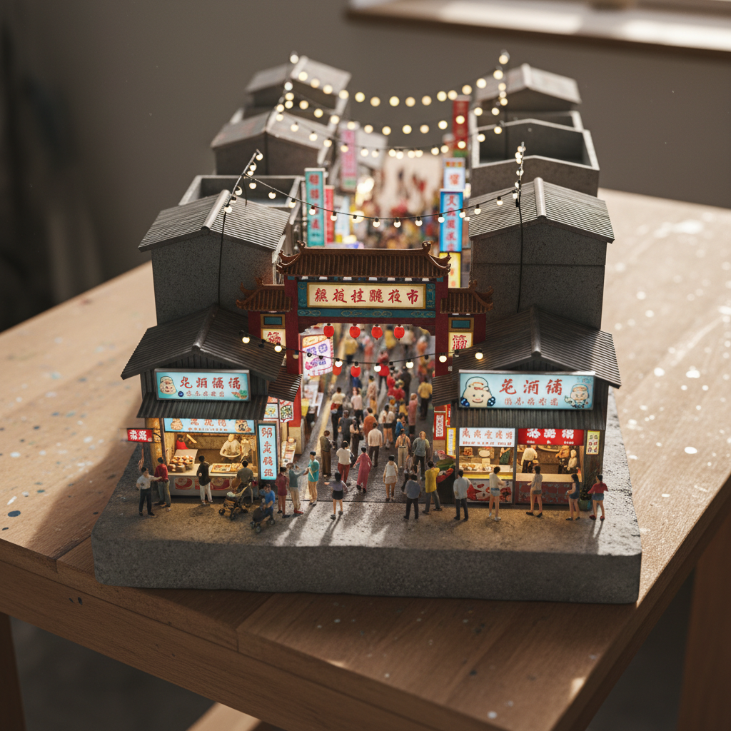 3D Miniatura Nocnego Targu Rauhe Street na Tajwanie