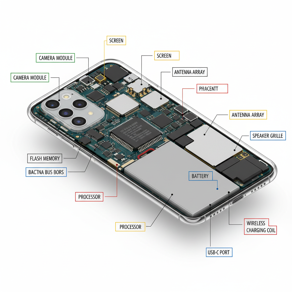 Techniczna infografika smartfona w izometrii 3D
